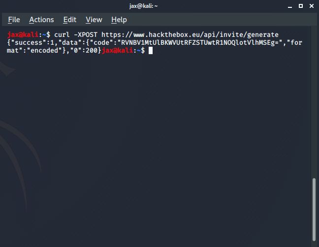 curl https://www.hackthebox.eu/api/invite/generate -XPOST