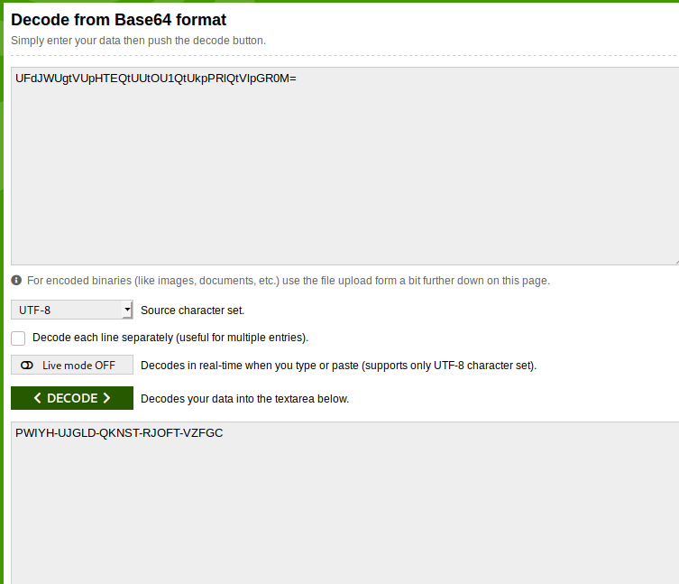 In my case, it is encrypted using BASE64. So let’s decrypt it using an online decrypt tool. I’m using https://www.base64decode.org/ .However, in your case, the encryption algorithm might be different like ROT13, etc.