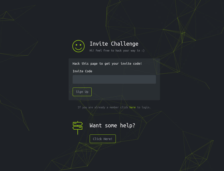 So, this page asks you for invite code to signup to the site. So how do we do this? Let’s find out!