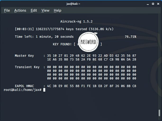 Remember that this is a wordlist attack and the success depends on the fact that the password of the AP is in the wordlist. Also, it will take sometime to crack the network whose speed depends on your system specifications.