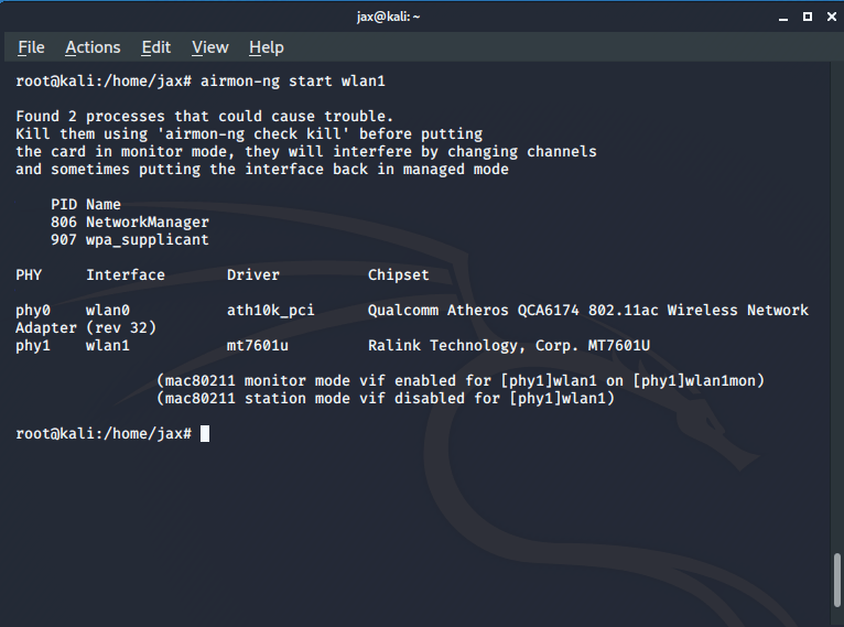 Now we need to put the wireless adapter in monitor mode. So we use the following command: