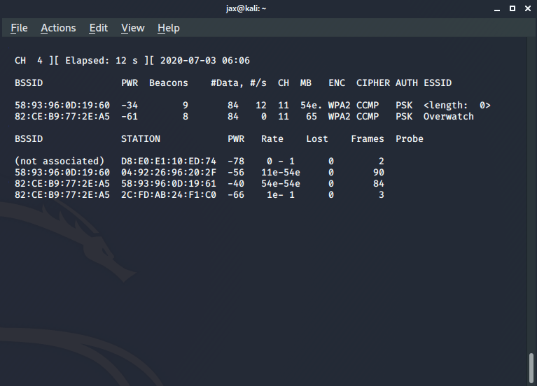 Now stop it and copy the BSSID of the router, which is the MAC address of the router.