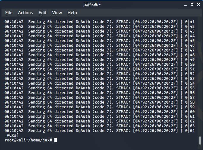 Now keep it running and fire up another terminal. In this terminal, we are going to deauthenticate a connected client to collect the handshake by sending deauth packets. So, enter the following command:
