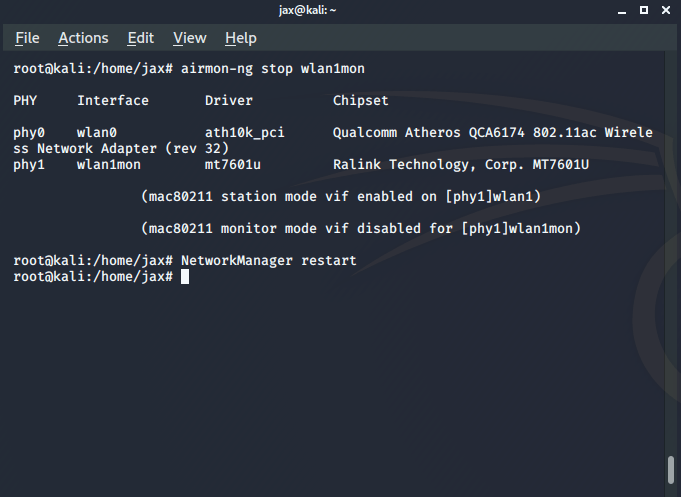airmon-ng stop <interface name>