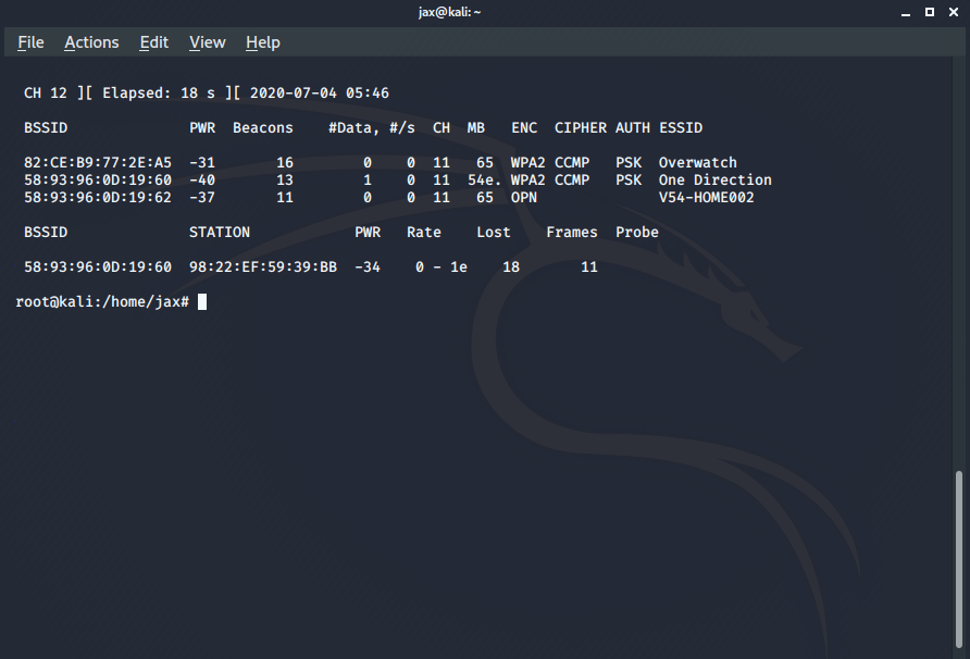 airodump-ng <interface in monitor mode name>
