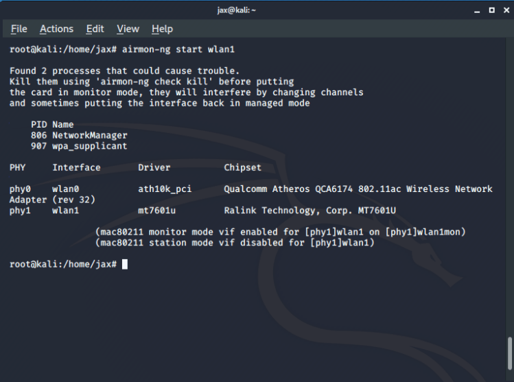 airmon-ng start <interface name>